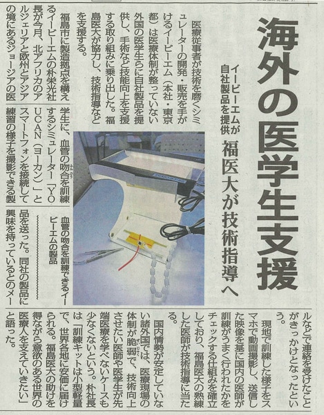 2025年11月18日付の福島民報新聞に、当社が開発・製造する外科トレーニングシミュレーターを活用した海外医学生支援の取り組みが掲載されました。
